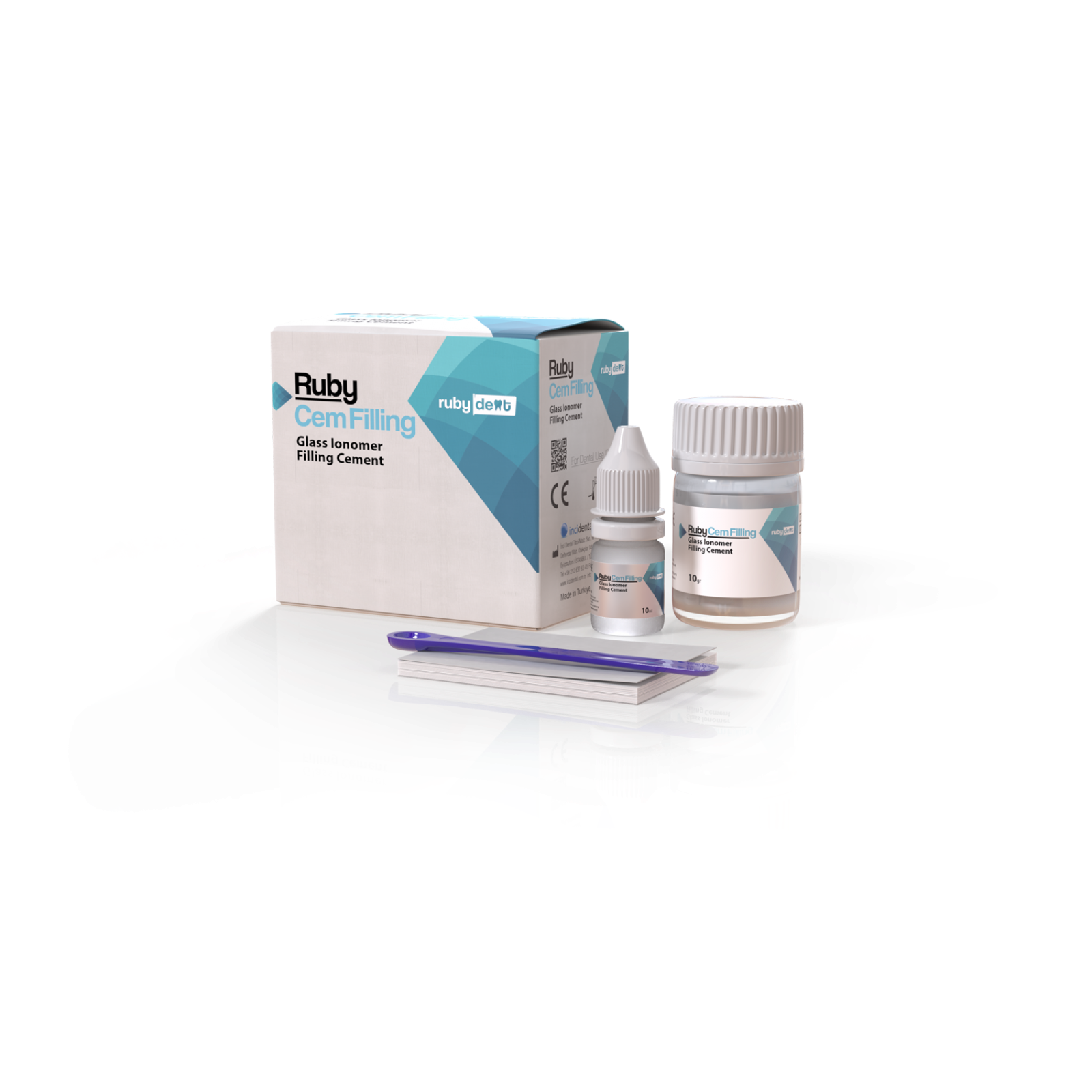 Biocompatible radiopaque powder and liquid glass ionomer filling cement.